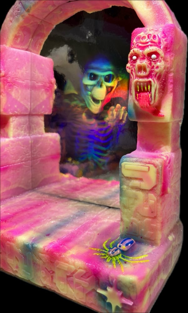 Marbled one off and meticulously hand painted. Includes gems and holographic detail.