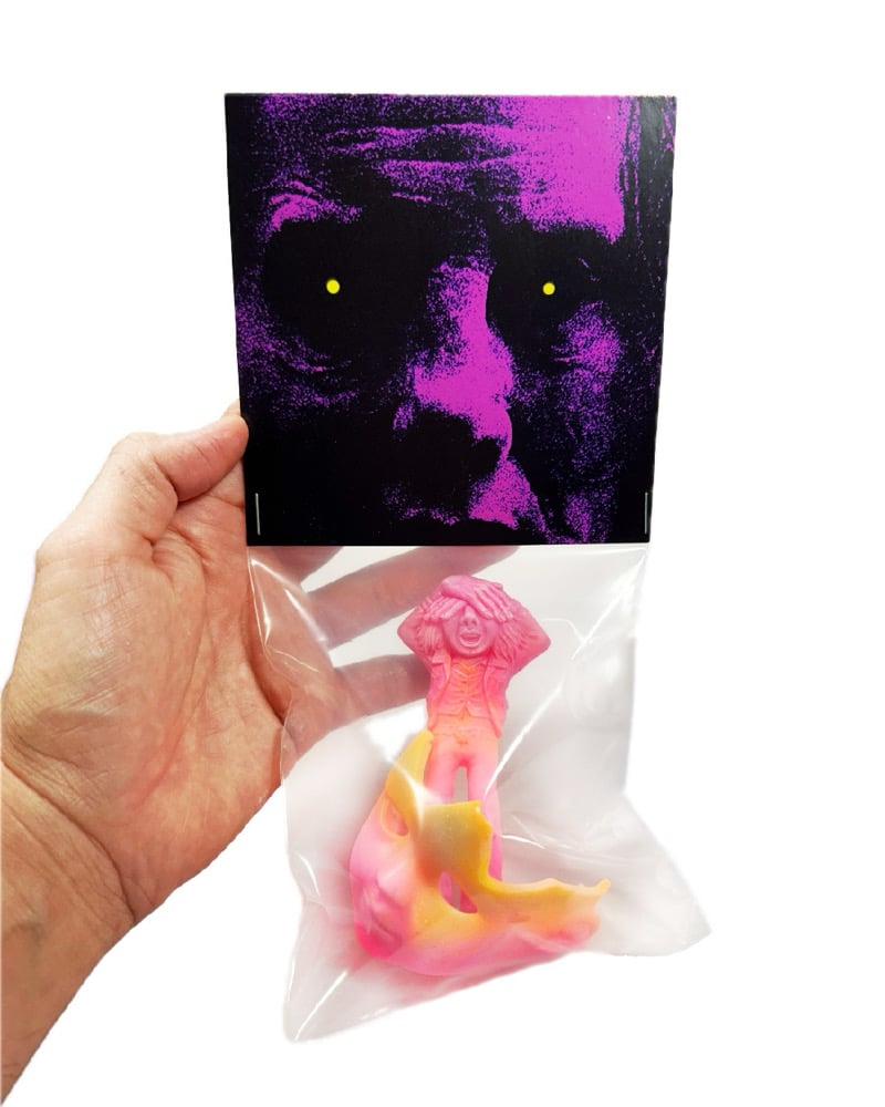 A collaboration between myself and Thomas Hensley as a tribute to the film LONGLEGS. The figure was masterfully sculpted by Thomas and the doll head by me. Comes bagged with a header card.