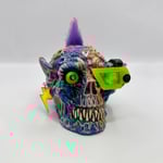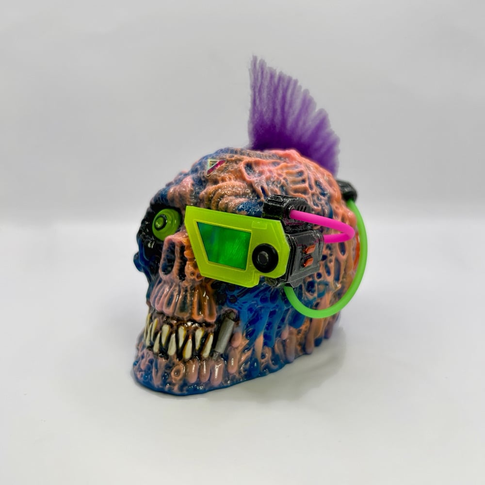 I designed this figure based on my three favorite things PUNK! CYBORGS! and DEMONS! Each piece was meticulously assembled using an array of unique materials. Includes header card artwork by comic book beast ALEXIS AZIRITT.