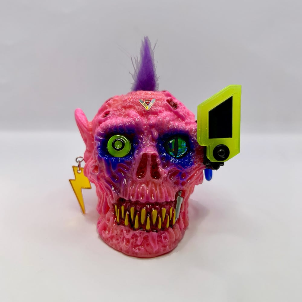 I designed this figure based on my three favorite things PUNK! CYBORGS! and DEMONS! Each piece was meticulously assembled using an array of unique materials. Includes header card artwork by comic book beast ALEXIS AZIRITT.