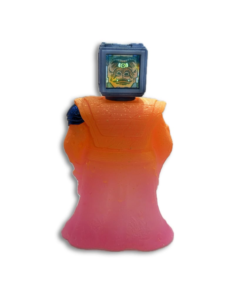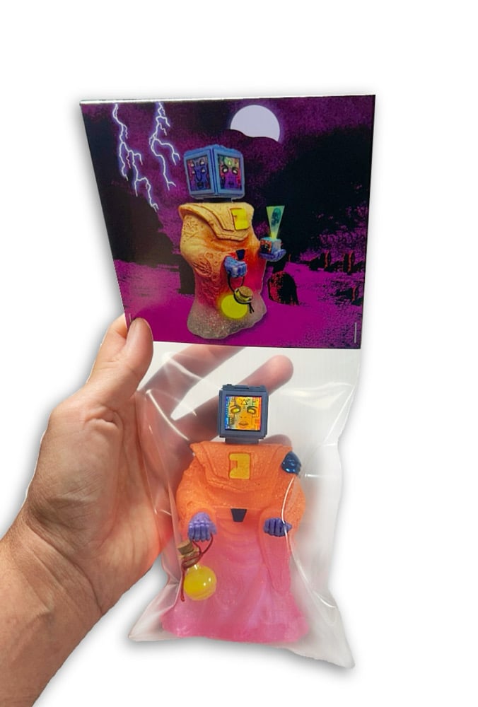 This figure was designed over my love for medieval fantasy and cyborgs. Roto casted using a mix of pigments and color shift powder. Meticulously put together using an array of parts. Comes bagged with a header card and sticker. Edition of 4