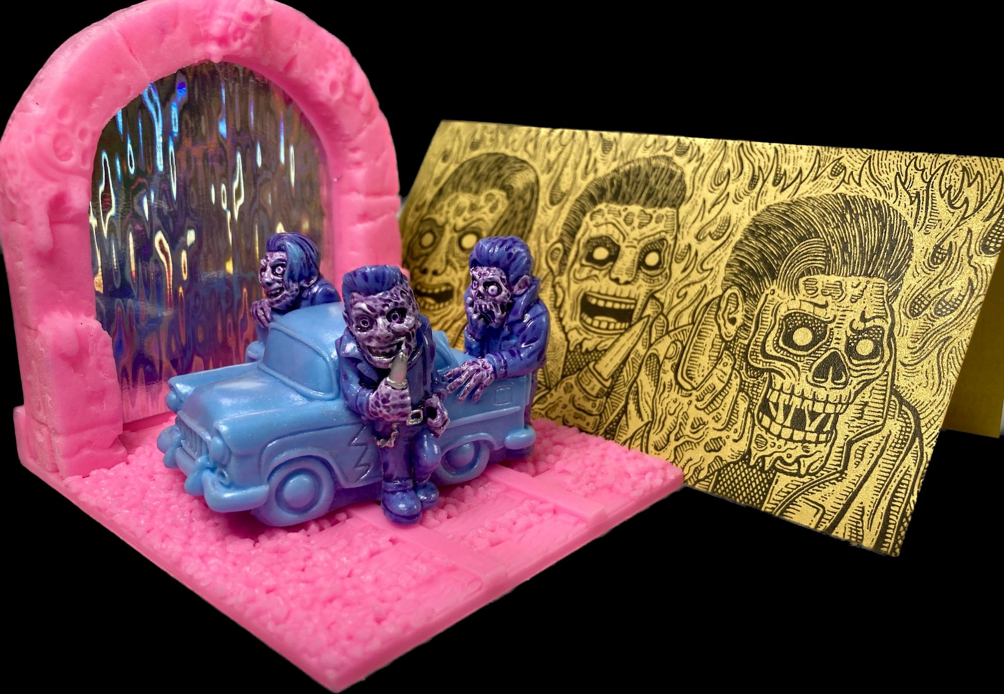 Casted using fluorescent pigments. Meticulously hand painted and finished with holographic detail. Comes bagged with a header card, which features artwork by Epoch.